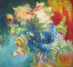 2011bloemen vrij uitgevoerd, dikke lagen olieverf, bauw, groen en overlopende tinten